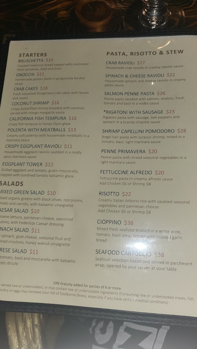 Don't miss out on their exquisite desserts—particularly the Tiramisu, which balances flavor without overwhelming sweetness. With attentive service and a warm, inviting atmosphere, Federicos' is more than a dining spot; it’s an experience that feels like home.